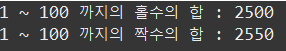 1 ~ 100 까지의 홀수의 합과 짝수의 합을 구하여 화면에 보여주세요
