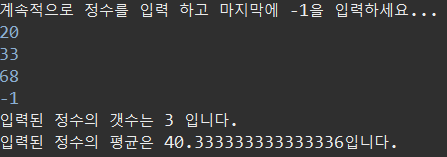 int count = 0; // 입력된 정수의 갯수가 저장될 변수 (평균 구할 때 필요)