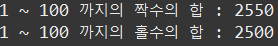 for문을 이용해서 1 ~ 100 까지의 짝수와 홀수의 합을 구해라