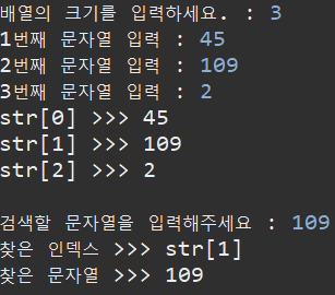 // 문자열 배열에 저장된 문자열을 검색해보자