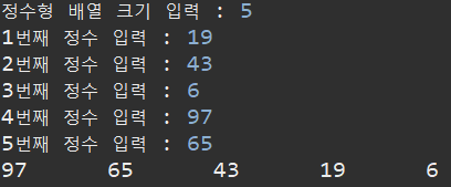 키보드로 배열에 정수 데이터를 저장하고 입력된 값을 내림차순으로 정렬해보자!