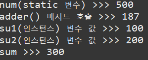System.out.println("adder() 메서드 호출 >>> " + Static.adder(150, 37));