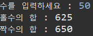 키보드로 입력 받은 수까지의 홀수의 합과 짝수의 합을 구하는 메서드를 만들고 메서드를 호출하여 처리 후 화면에 보여주세요