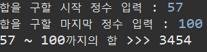 System.out.print("합을 구할 시작 정수 입력 : ");