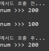 System.out.println("num >>> " + num); // 200인 이유 : call 메서드가 끝나면 call의 num값이 초기화됨