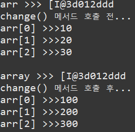 public static void change(int[] array) { // array는 arr에서의 heap의 주소값 따라서 arr주소값을 복사했다는 것!