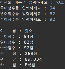 // 4. 학점을 구하자 ==> 학점 메서드 호출