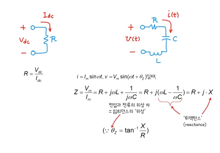그래서 AC전압, 전류를 전제로 한 ‘임피던스’란 말을 DC에서 말하는 ‘저항’대신 혼용해 사용하기도 한다.