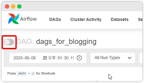 실제로도 이런 상태의 DAG 를 Airflow ui 에서 Unpause 를 해도
