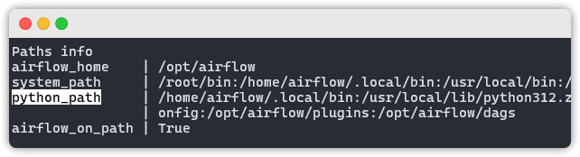 airflow 는 이러한 경로들을 airflow info -> python_path 를 통해 알 수 있습니다.