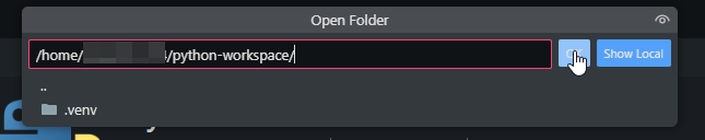마지막 3번에서 아까 만든 ~/python-workspace 디렉토리를 선택하면 됩니다.
