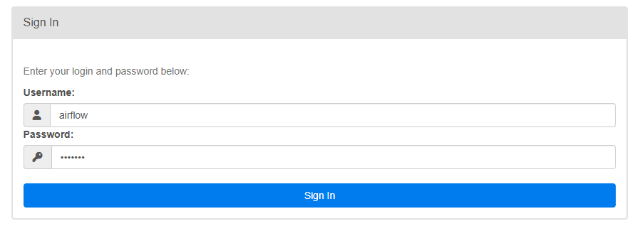 Username, Password 모두 airflow 를 입력하고 로그인 합니다.
