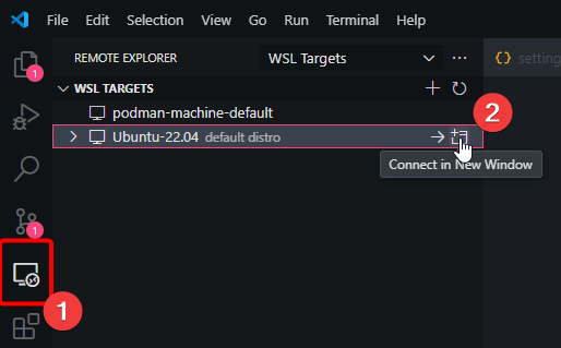 자신이 WSL 명칭 옆에 Connect in New Window 라는 아이콘을 클릭해주세요.