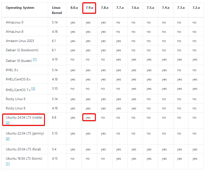 이 버전을 선택한 이유는 Ubuntu 24.04 에 맞는 7.x 버전대가 7.9 밖에 없어서 그렇습니다.