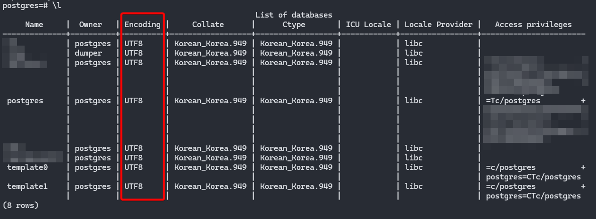 이후 목차에서 PGCLIENTENCODING 전역변수를 수정하는 부분이 있는데,