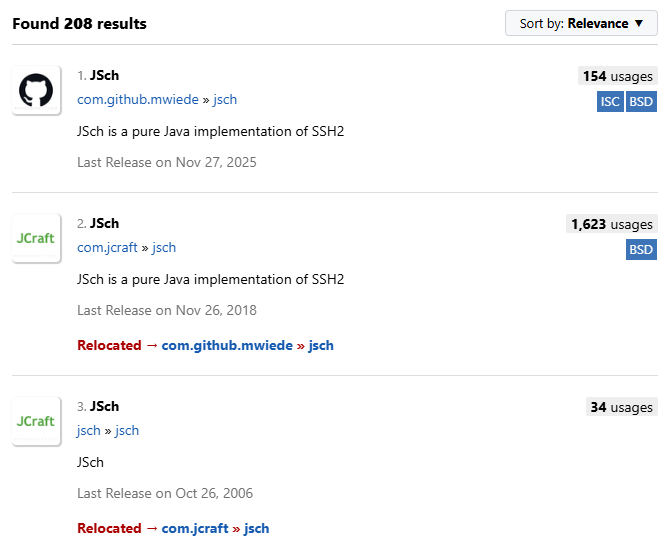com.jcraft 패키지에 relocated 표기가 된 것을 확인할 수 있습니다.
