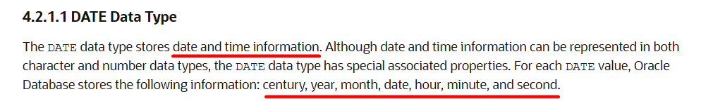 하지만 Oracle DB 의 date 타입은 연월일 / 시분초 (밀리세컨드 제외) 를 모두 포함한 개념입니다.