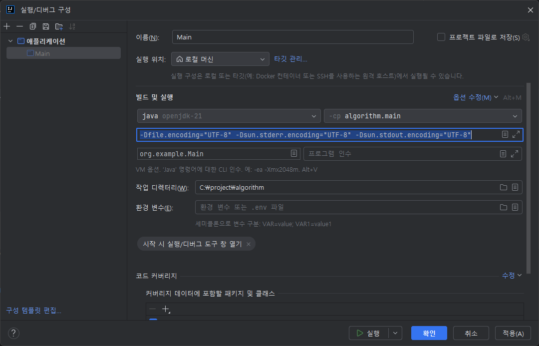 위 코드를 VM 옵션에 작성해주시면 아래와 같이 깔끔하게 해결됩니다.