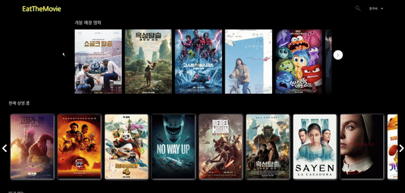 이번 팀 프로젝트는 개인프로젝트에서 진행했던 영화 페이지를 바탕으로 추가적인 기술과 기능들을 넣어 새로운 느낌의 영화 웹페이지를 Rebuild하게 됐다.