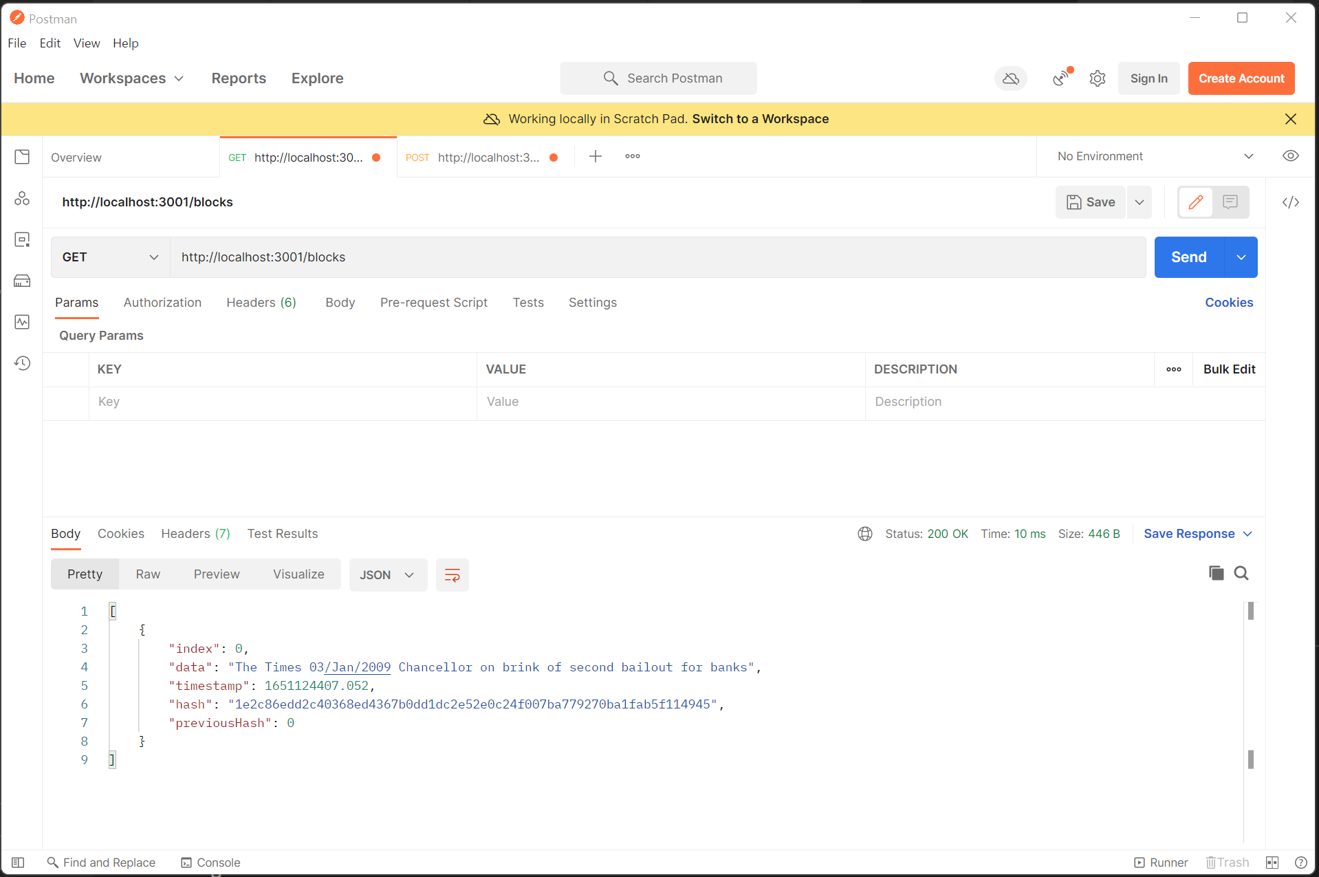 genesisBlock.hash = calculateHash(genesisBlock.index, genesisBlock.data, genesisBlock.timestamp, genesisBlock.previousHash);