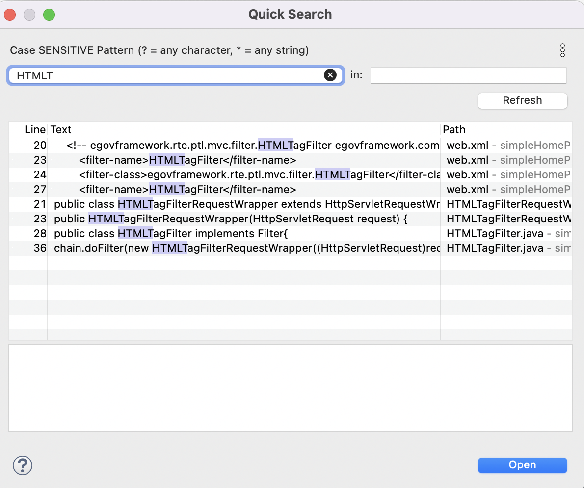 이클립스를 쓸때 문자열에 대한 전체 검색을 빠르게 할 수 있는 QuickSearch라는 플러그인을 사용하자.