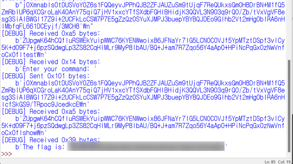 만약 클라이언트가 'show' 명령을 보내면, 서버는 flag를 암호화하여 클라이언트에게 전송한다.