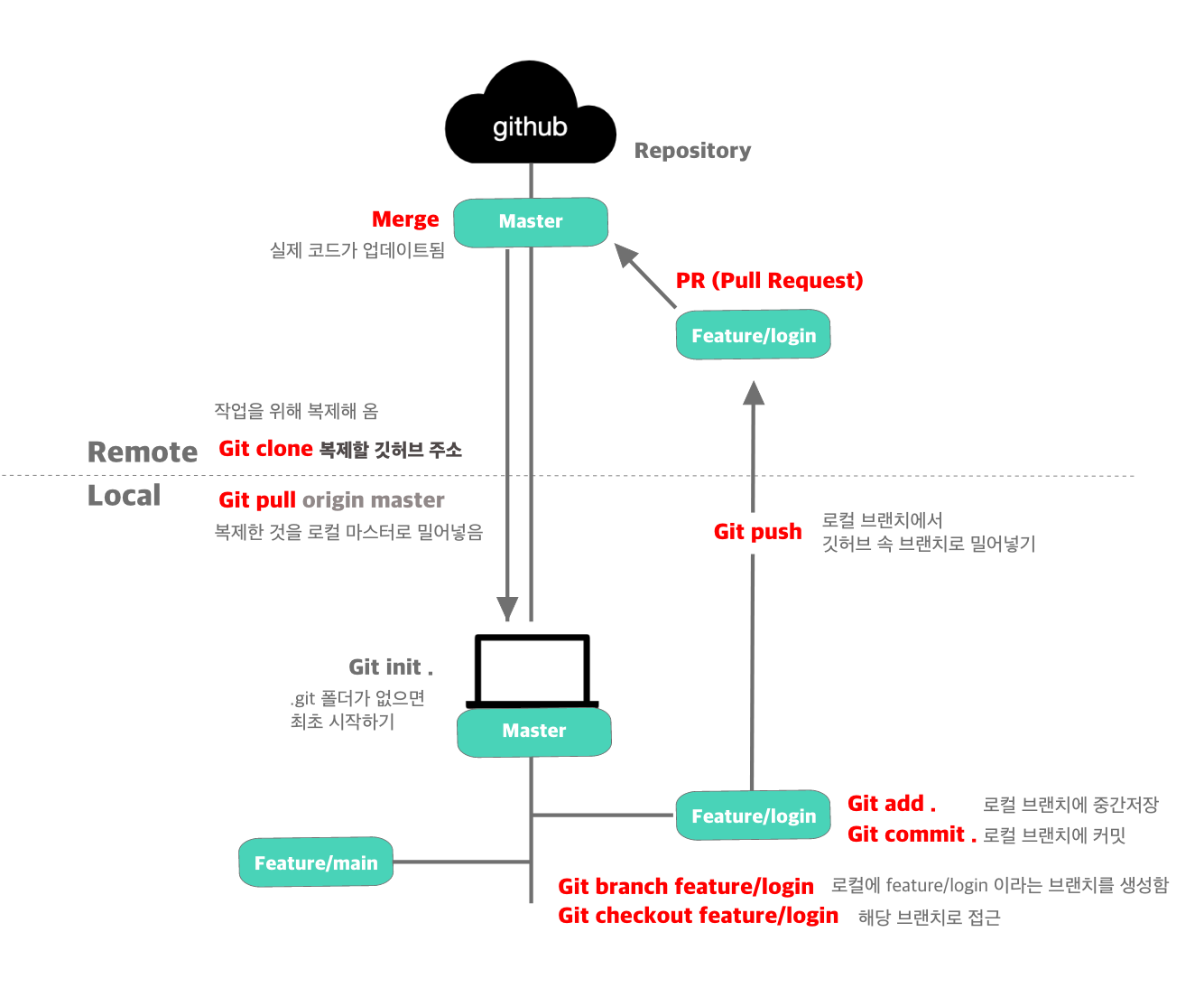 🐶 깃허브 협업을 위한 주요 명령어 구조!