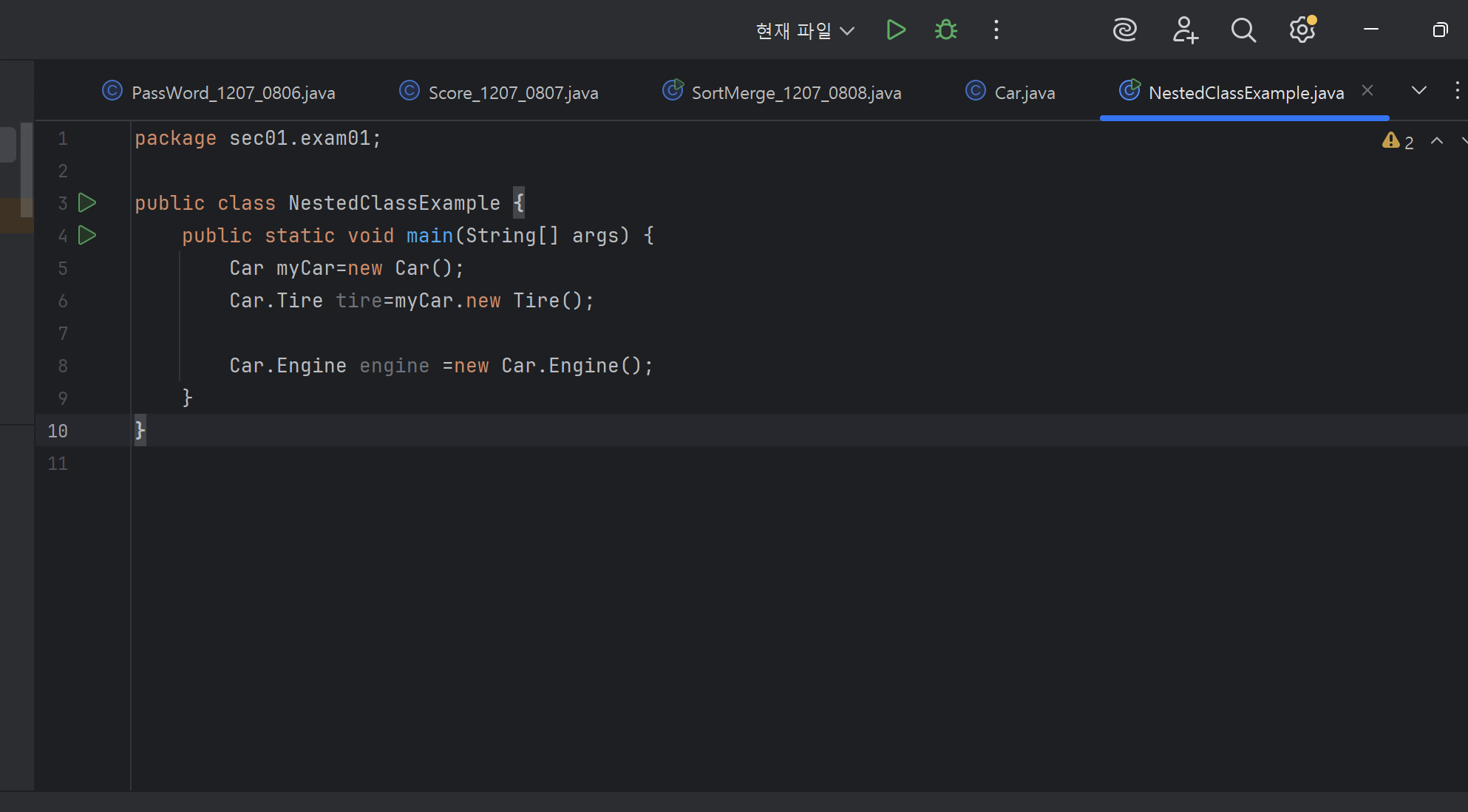 상수 필드 선언 인스턴스 정적 피드에는 선언할 수 없고 상수 필드에서는 선언이 가능합니다. 상수는 인터페이스에 고정된 값으로 실행시 데이터 변경이 불가능하다. 상수는 public static final로 선언(6장에서 배움)