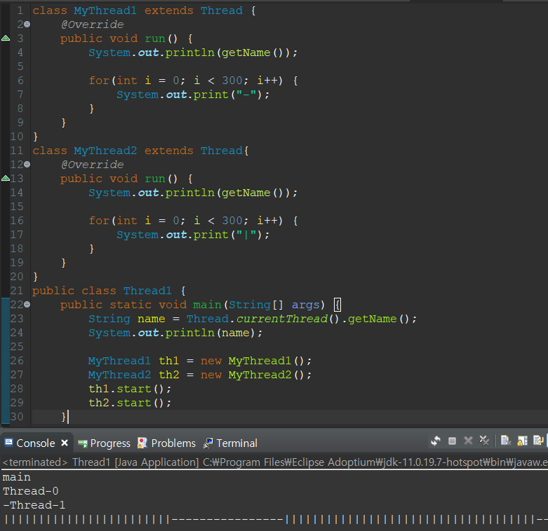 2.아래를 쓰레드로 생성하여 프로그래밍 하시오. -300번 찍기 |300번찍기