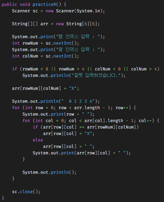 문제 ( 메서드명 : public void practice9( ) { } )