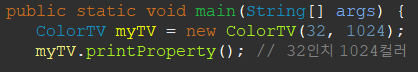 IPTV iptv = new IPTV("192.1.1.2", 32, 2048); //"192.1.1.2" 주소에 32인치, 2048컬러