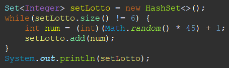 2.로또 프로그램을 작성하시오.(Set 으로)