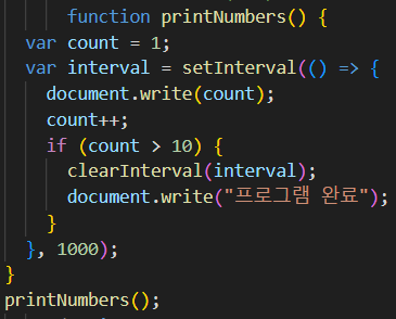 설명:1부터 10까지 출력을 하되, 1초마다 증가된 숫자를 하나씩 찍고, 10초후 프로그램 완료를 찍을것