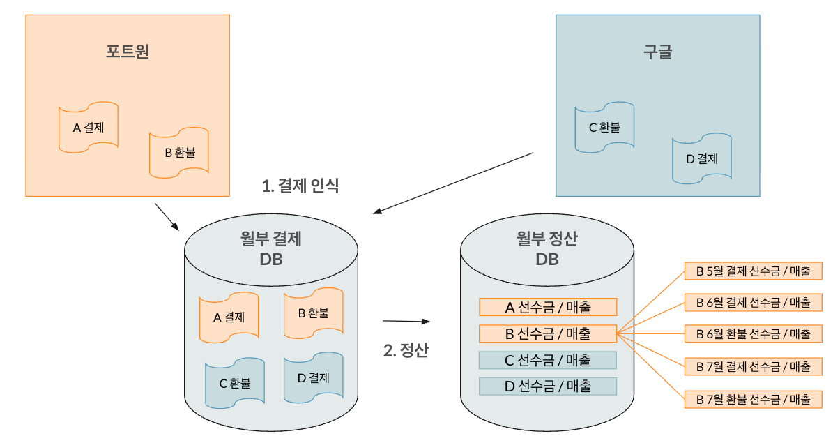 결제/환불 데이터를 통해 각 결제 건들에 대한 월정산을 통해 매출 인식한다. 월부의 경우 강의가 주력 상품이기 때문에, 발생주의에 근거하여 실제 서비스를 제공한 비중에 따라서 매출을 분할하여 인식해야 한다.