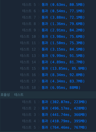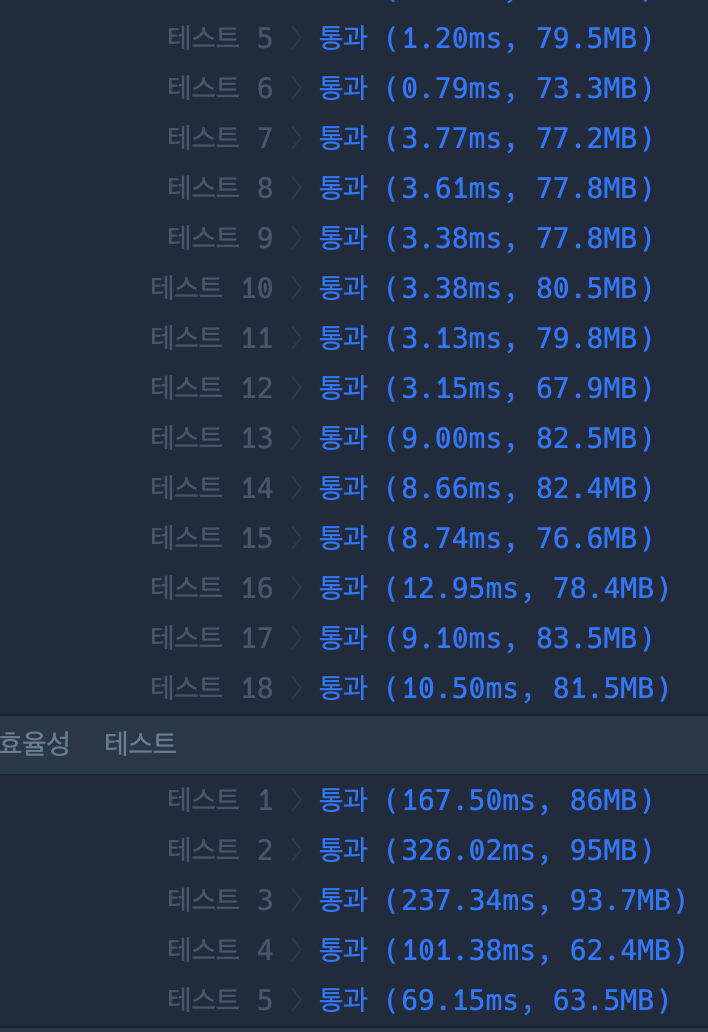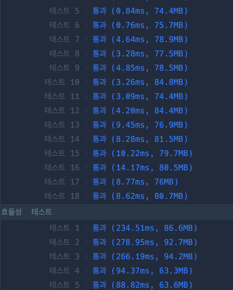 효율성 테스트에서도 2번 테케에서는 캐시 사용한 경우가 더 느렸습니다.