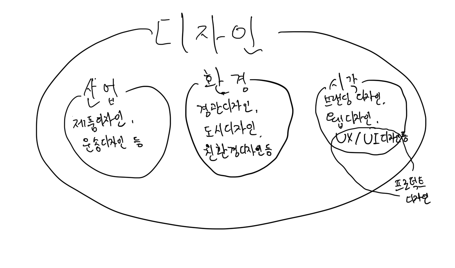 디자인은 크게 세가지로 나뉘는데 산업디자인, 환경디자인, 시각디자인으로 이루어진다고 한다. 산업과 시각은 보통 산디과, 시디과로 들어 비교적 익숙한 편이다. 그 중 프로덕트 디자인은 시각디자인에 완전히 속하는 것은 아니지만 그 요소를 포함한 더 포괄적인 개념이라고 한다.