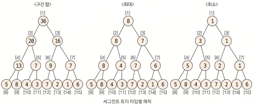 세그먼트 트리: 주어진 데이터의 구간 합과 데이터 업데이트를 빠르게 수행하기 위한 자료구조. 이때 ‘구간 합’ 이라는 것은 합 배열을 뜻한다.