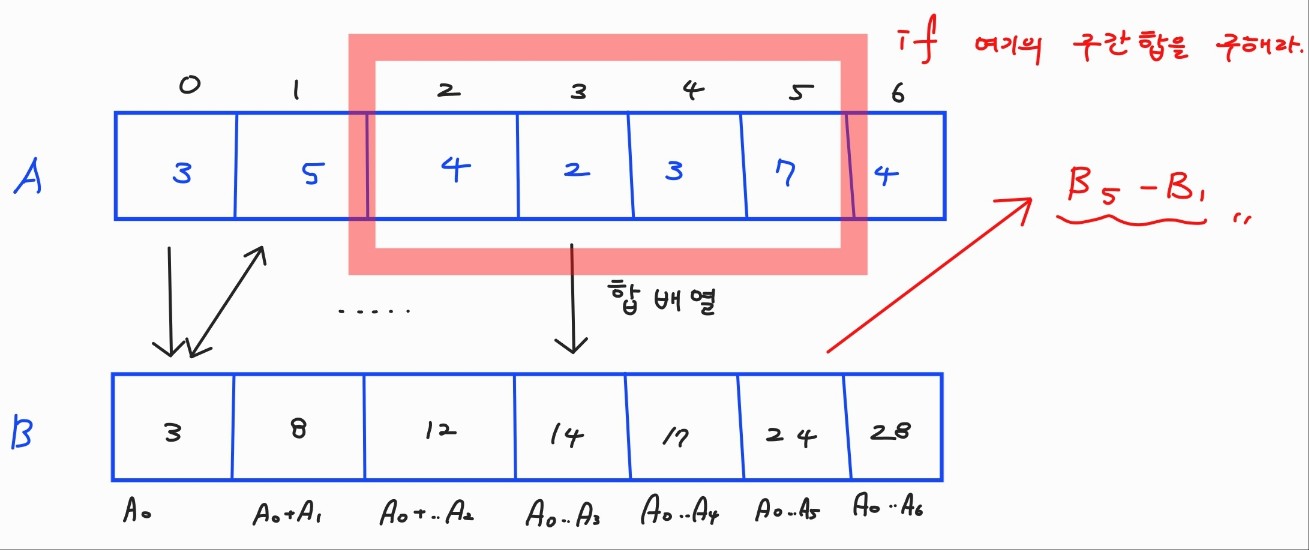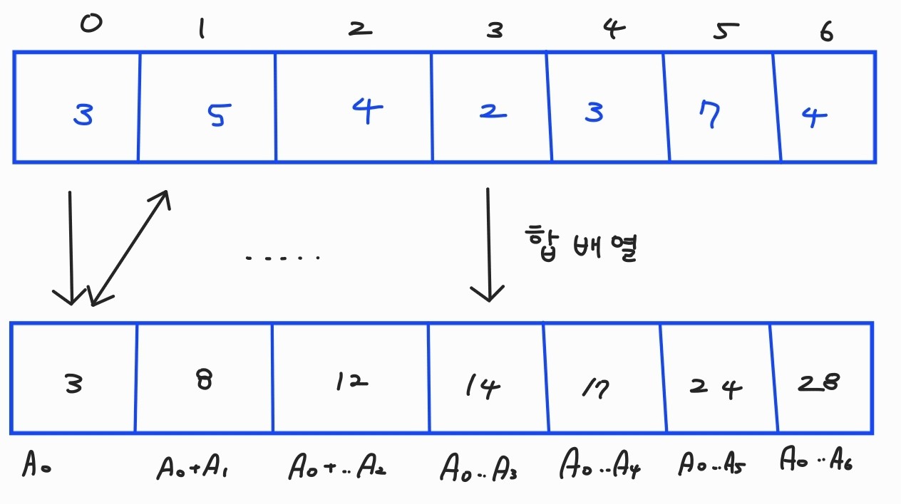 사진을보면 합 배열의 현재 인덱스 값을 그전의 인덱스 값을 모두 더한 것과 같다.