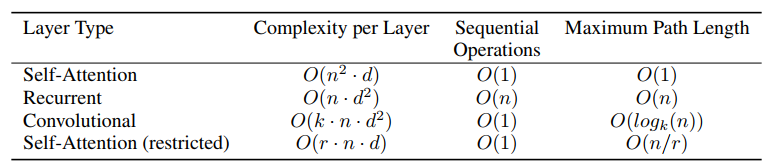 recurrent, convolution layer와 self-attention을 비교할 때