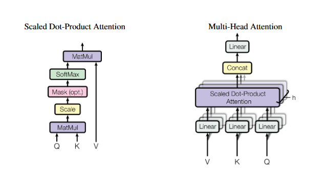 Additive 어텐션은 하나의 히든 레이어와 함께 피드 포워드 신경망을 계산한다. 두가지 비슷한 이론적 복잡도 중, dot-product 어텐션은 더 빠르고 더 효율적이다.