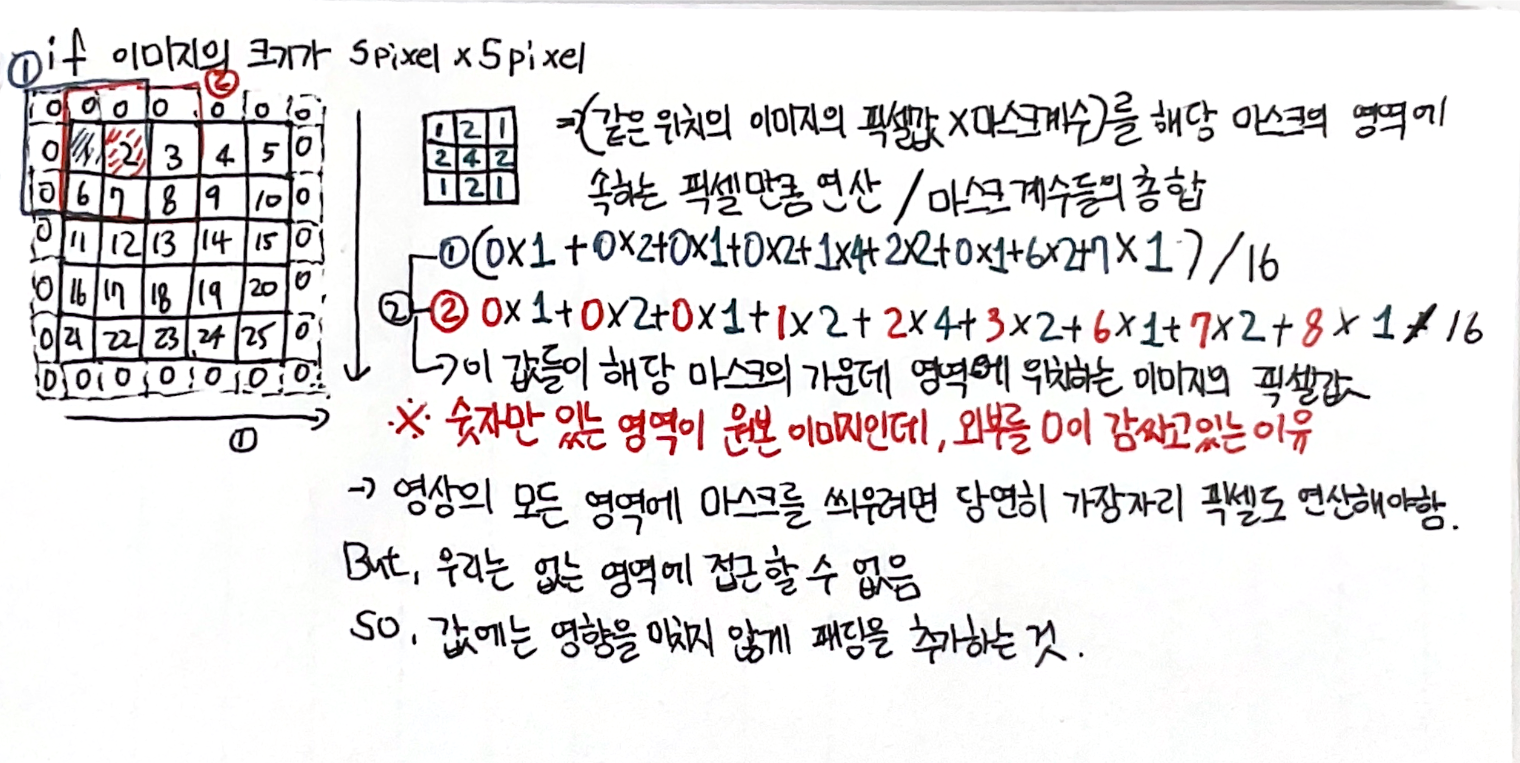가우시안 이미지를 초기화 할 때 가로 세로 +2씩 해주고, 차후 2개의 반복문에서 인덱스를 변한 것에 맞게 조정해주면 된다. 그러니까