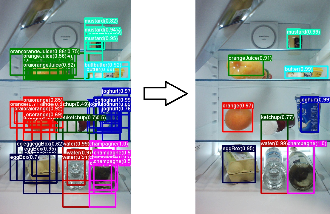 처음 객체를 검출시 하나의 객체에 대해 신뢰도가 높은 박스가 여러개 검출된다.