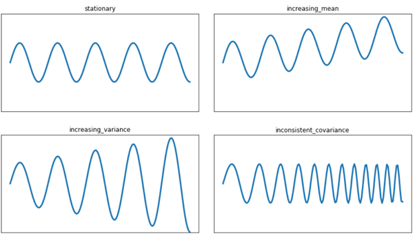 정지성은 평균 및 분산과 같은 시계열의 통계적 특성이 시간에 따라 변하지 않음을 의미하며, 또한 공분산(시계열의 확산)이 시간에 의존해서는 안 된다는 것이다. 많은 통계 모델이 예측을 위해 이러한 속성에 의존하기 때문에 이러한 통계적 특성은 일정하게 유지하는 것이 중요하다. 따라서 평균, 분산 또는 공분산이 시간에 따라 변하는 경우 모형은 다음 값을 정확하게 예측할 수 없다.