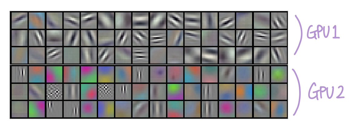 Single GPU limits the maximum size of the networks that can be trained on it → Spread the net across two GPUs