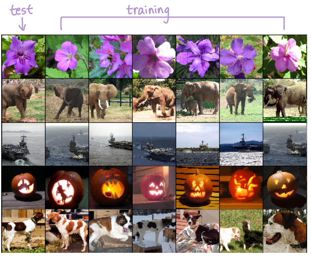 🧑💼 : At the pixel level, the retrieved training images are generally not close in L2 to the query images in the first column. (Retrieved dogs and elephants appear ina variety of poses)