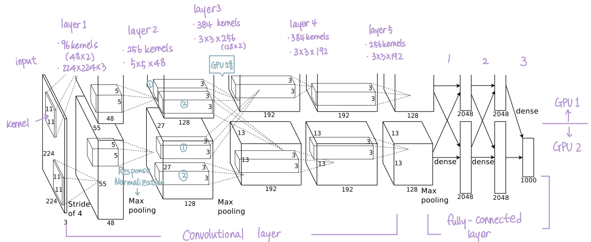 - 3 fully-connected layers ( final 1000-way softmax )