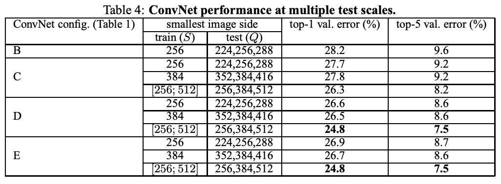 For speed reasons, we trained multi-scale models by fine-tuning all layers of a single-scale model with the same configuration, pre-trained with fixed S = 384.