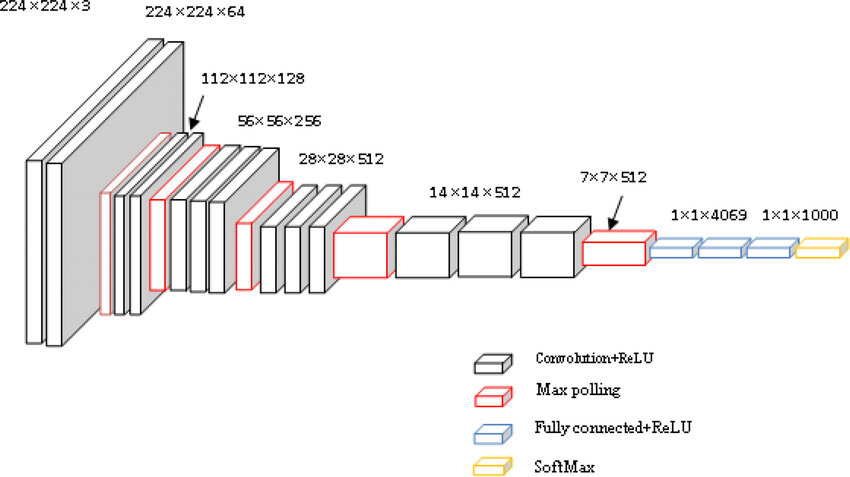 마지막 layer는 soft-max layer 이다. 보통 VGGNet에서는 Conv → Conv → Max-pooling 구조가 반복되고, 마지막에 Fully-Connected 층이 배치된다.
