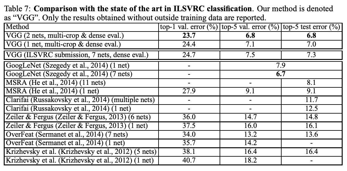 → ConvNet(합성곱 신경망)의 깊이를 크게 늘리면, ImageNet 데이터셋에서 최신 기술 수준의 성능을 얻을 수 있다
