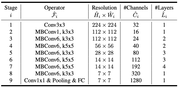 모델을 키우거나 복잡하게 만드는 것이 항상 좋은 결과를 내는 것은 아니고, 처음 설계한 네트워크 구조가 얼마나 잘 만들어졌는지가 매우 중요하다. 그래서 더 좋은 시작점을 찾기 위해 Neural Architecture Search를 써서 기본이 되는 새로운 모델 구조를 자동으로 찾아낸다. 이 구조를 기반으로 크기를 키워가며 EfficientNets를 만든다.